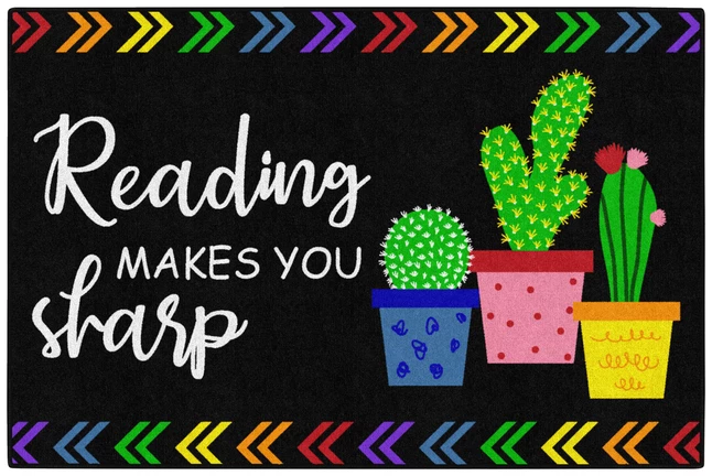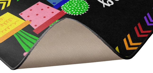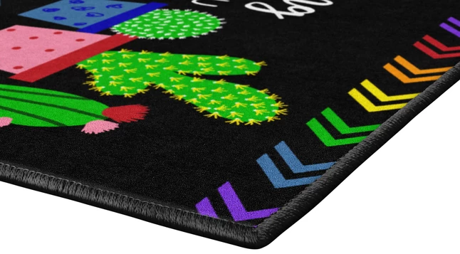 Brighten up any classroom, playroom, or child’s bedroom with this fun educational cactus rug! With vivid primary colors on a black background, this carpet will add a modern flair to any space. Machine washable for easy care, this carpet is treated with Force 5 antimicrobial properties to help fight against mildew and mold. Measures 4 x 6 feet.